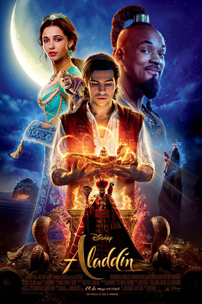 Título original: Aladdin; Dirección: Guy Ritchie; Guion: John August, Guy Ritchie (Remake: Ron Clements, Ted Elliott, John Musker, Terry Rossio); Música: Alan Menken; Fotografía: Alan Stewart; Reparto: Mena Massoud, Naomi Scott, Will Smith, Chico Kenzari, Billy Magnusse