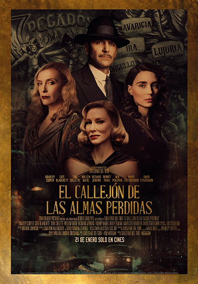 Guillermo del Toro realiza una nueva adaptación del clásico El callejón de la almas perdidas con un pretendido tono noir al que no le falta detalle: está la femme fatale, el protagonista de moral ambigua, la criminalidad en el día a día, el afán de ascenso social y, por supuesto, los negocios turbios a costa de la inocencia ajena.